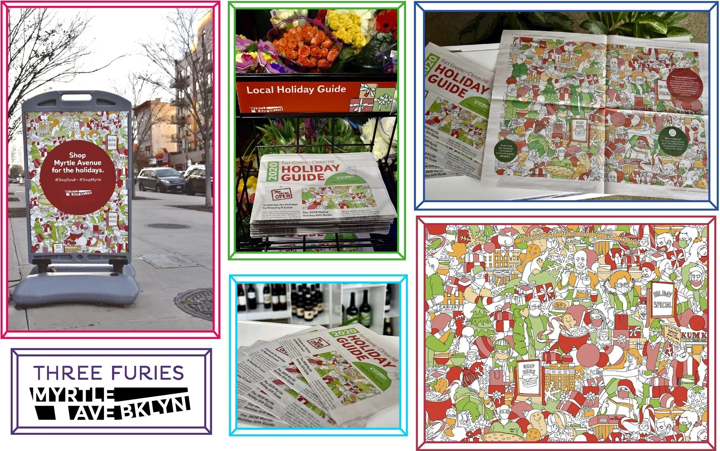 Holiday Gift Guide mailer illustration for the Myrtle Avenue Business Improvement District (Dec. 2020) Photo Credit: Lauren Evarts