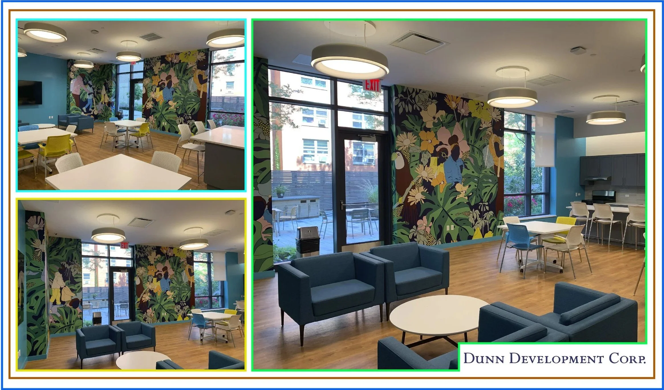 Images of, "Earth and Family," featured as the wallpaper in the community room at the Simba Simbi Seniors apartment complex in Brooklyn installed June 2024. The project is in collaboration with Dunn Development Corp.