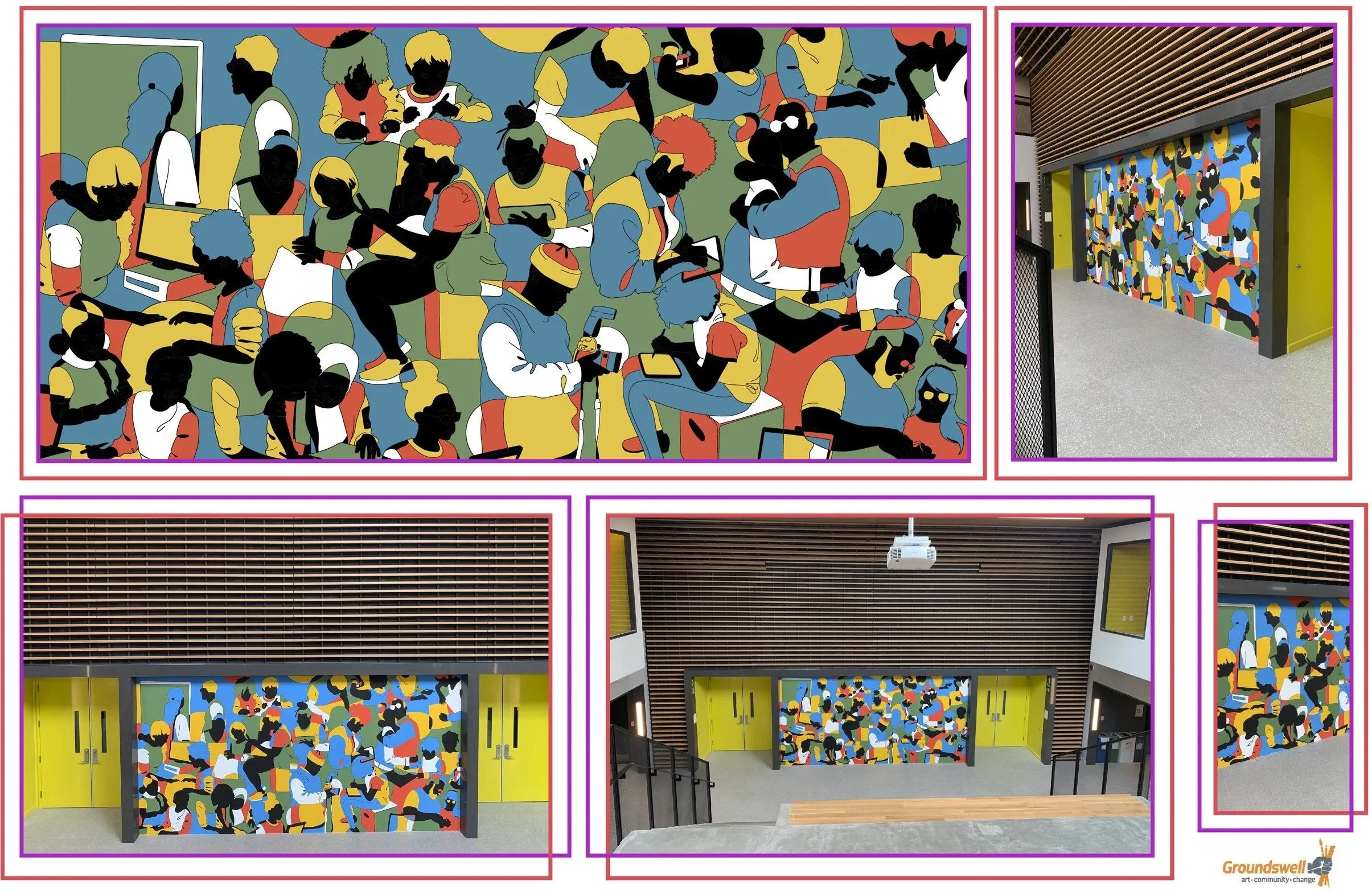 Excited to be a Google Artist in Residence. Artwork, "The New Yorkers," is featured at the St. John's Terminal in NYC. The location opened April 2024. The design celebrates the diversity of the city and features bright multi-colors. There is a featured interactive coloring station, with mural walls that face the West Side Highway, with additional panels of the artwork featured in the Google Store area. Images by Charles Benton.