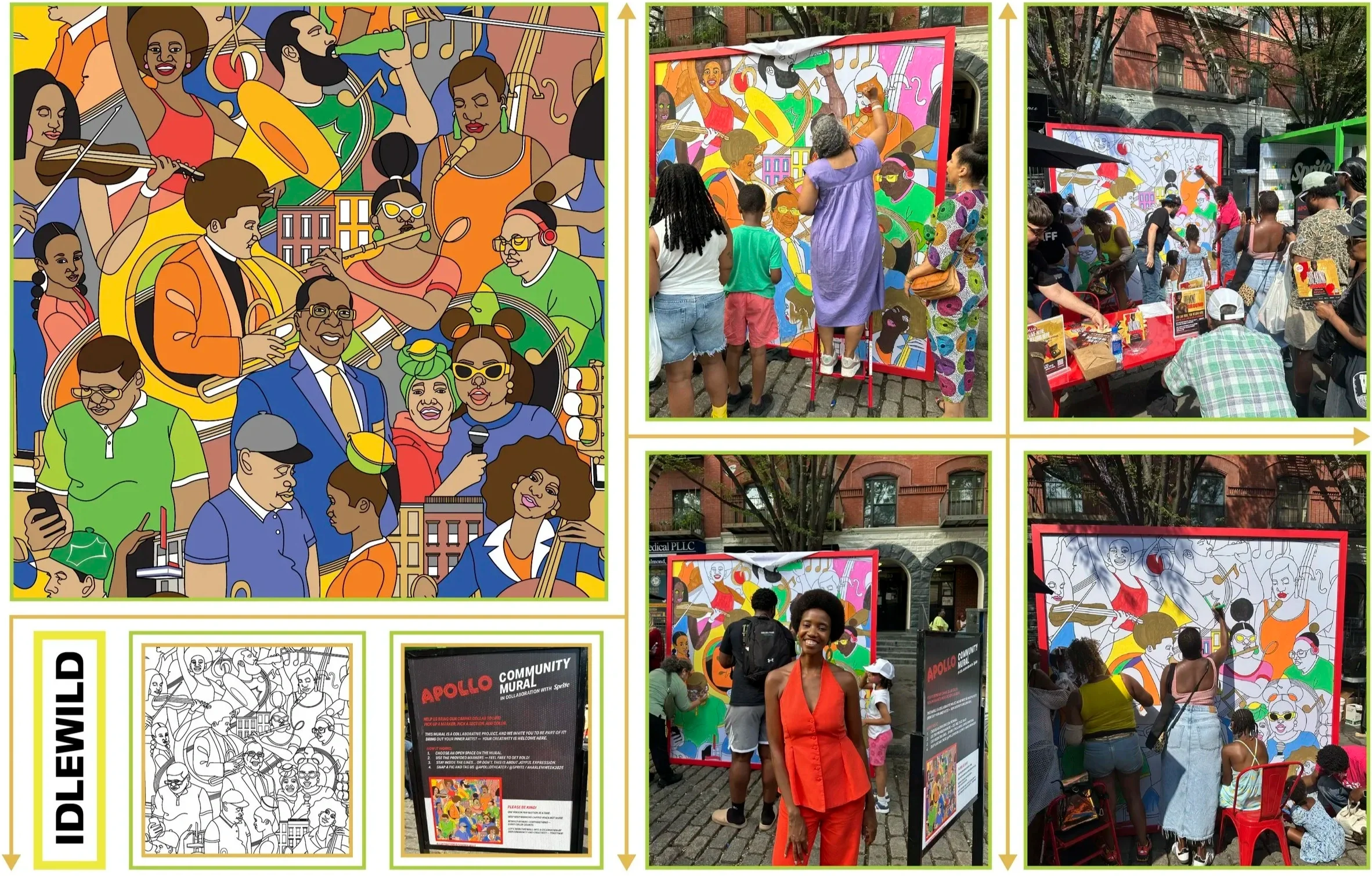 Created the Apollo Community Mural in Collaboration with Sprite for Harlem Week in August 2025 through Idlewild Experiential. The public was invited to add a colorful spin to the public art piece using provided paint markers.